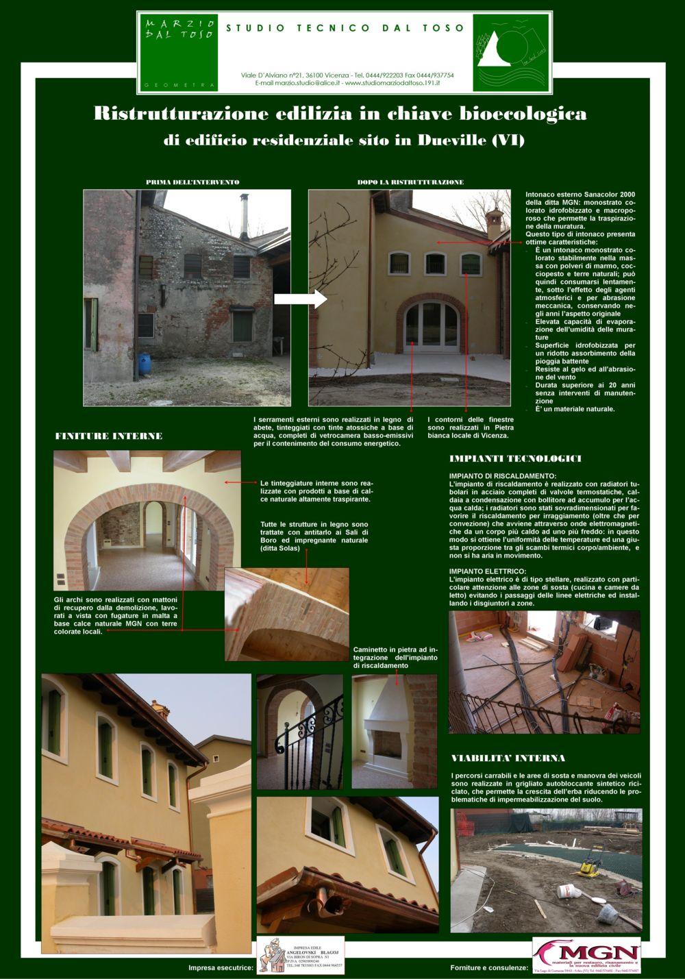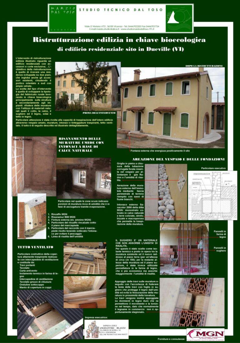 Pannelli esplicativi della ristrutturazione edilizia in chiave biotecnologica di un edificio residenziale a Dueville (VI) e di una nuova costruzione edilizia in chiave biotecnologica di un edificio residenziale in zona Bassano del Grappa (VI), presentati nell’ambito della fiera “Montagna in Città” svoltasi a Schio nell’Ottobre del 2007.